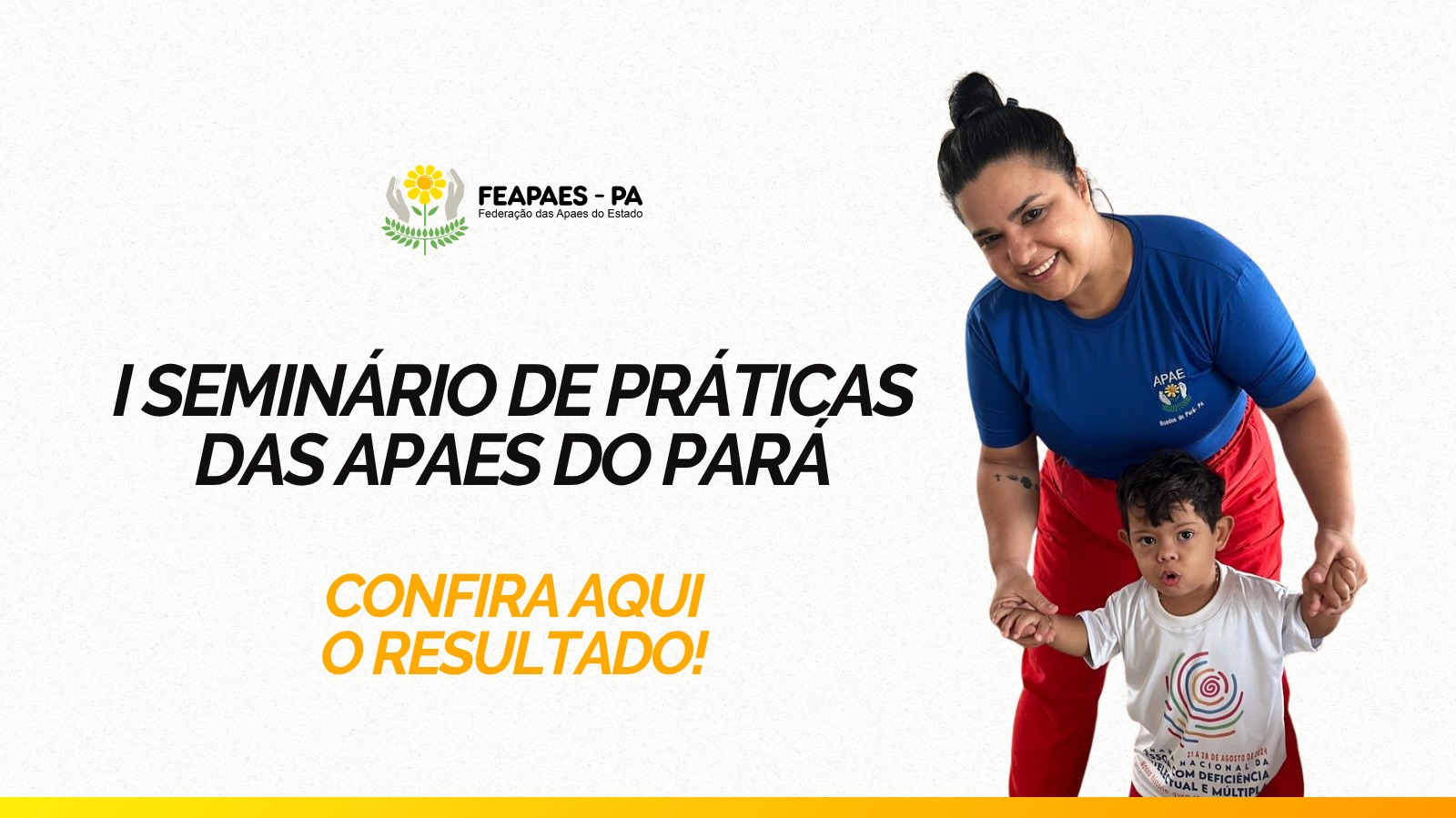 A Federação das APAEs do Estado do Pará – FEAPAES-PA convida as APAEs do Estado do Pará a participarem do I Seminário de Práticas das APAEs do Pará, etapa estadual do Seminário Nacional de Práticas, promovido pela APAE Brasil, no contexto preparatório para o XXVIII Congresso Nacional das APAEs.