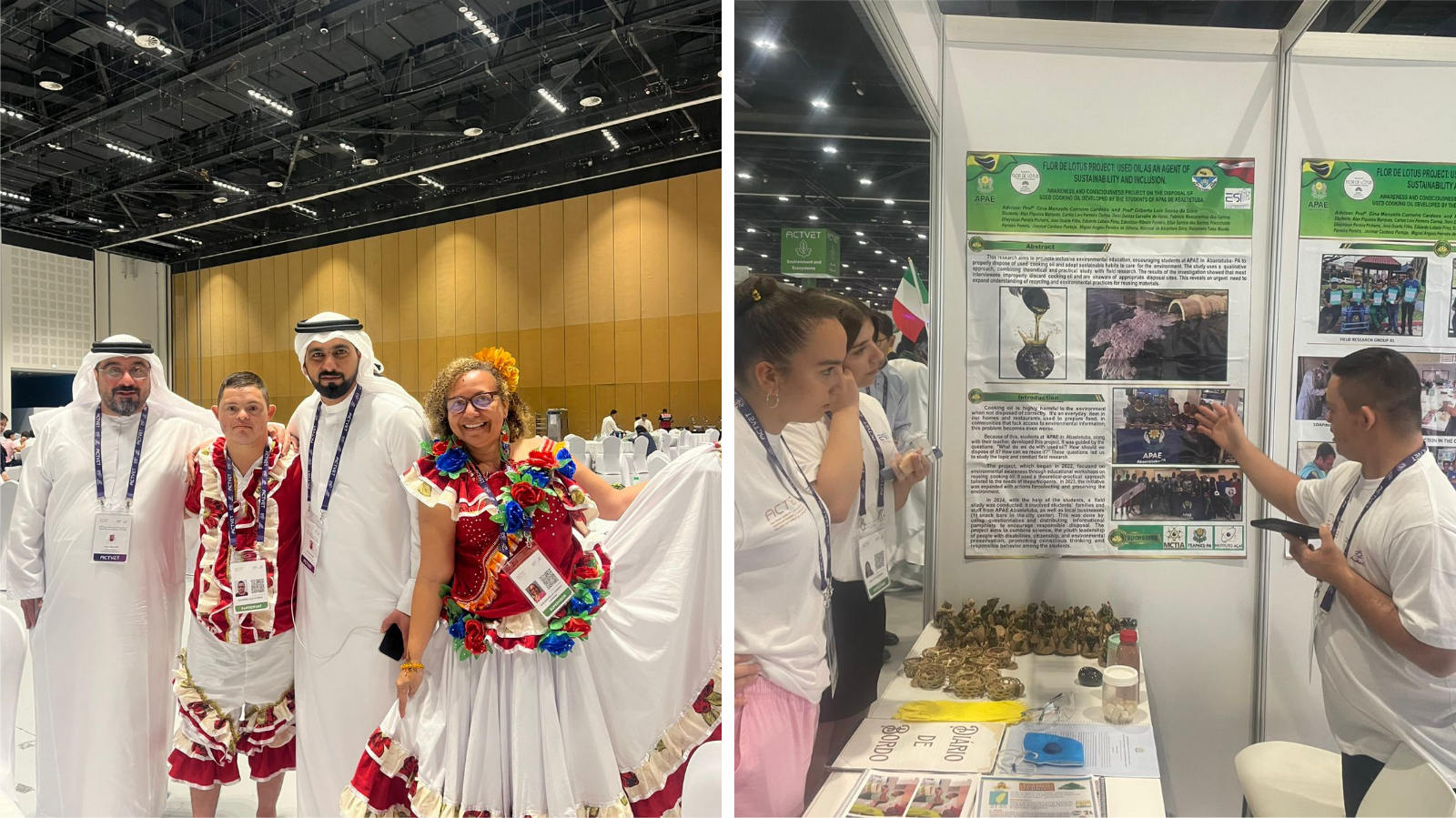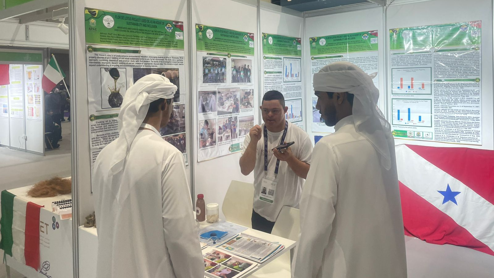 “O Eduardo, como única pessoa com síndrome de Down defendendo um projeto científico, quebrou paradigmas, e a partir de agora acredito que muitas oportunidades vão surgir para as pessoas com deficiência”, disse a professora Gina Manuelle Carneiro Cardoso, da Apae de Abaetetuba, sobre a participação do Projeto Flor de Lótus - Óleo sustentável e Inclusão, da Apae de Abaetetuba na MILSET Expo–Ciências Internacionais (ESI) 2025, promovida pelo Grupo ADNEC, em Abu Dhabi nos Emirados Árabes, de 29 de setembro a 2 de outubro de 2025.
