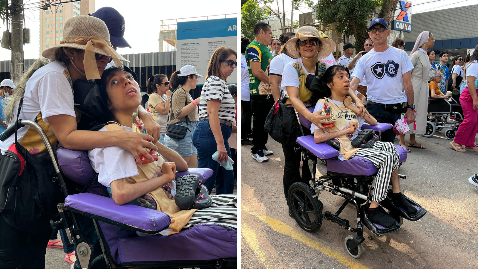 "Os médicos falavam que ela não ia chegar nem aos 20 anos e hoje ela já está com 26 anos e me agarrei a Nossa Senhora, não tinha nem Círio da Acessibilidade. E prometi que ia acompanhar enquanto ela (N.S. de Nazaré) me desse mais tempo com a minha filha", contou Aline Bandeira, mãe da Fernanda, de 26 anos, com paralisia cerebral, que tem uma família unida pela fé.